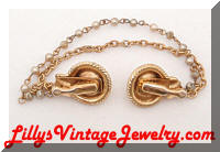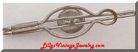 Click on pictures for larger views. Vintage Patriot Eagle Hat Pin or Jabot Victorian A wonderful piece of war time history. A large hat pin or jabot with the silver tone (pot metal?) top having a figural of an eagle with harvest of wheat and corn in its talons, a banner by its head reading " E PLURIBUS UNUM", an emblem above it's head and a shield in front of the body. E PLURIBUS UNUM means Out of many, one. It refers to the 13 colonies becoming a united country. It can also be interpreted as immigrants becoming one nation. It was the first motto of the United States in 1776 - 1956. The filigree dome that it is attached to appears to be bronze. The pin part has threads at the end like a screw. The total length is approx. 5-1/8" long. The top measures approx 1-1/8" across. Please ask questions, I haven't had anything like this before. #6150708 $35.00 Vintage Sportsman Bowling Cuff Links, Tie clip, Money Clip and Pen Can you call this a full parure for men? This set is perfect for the avid bowler and it's in the original box. The lid states SPORTSMAN VI with magic tip pen made in U.S.A. There are no markings on any of the pieces besides the pen that just shows USA Magic Tip. All pieces are smooth and textured gold tone with black enamel for the bowling balls. On the top of the pen is a man bowling. There are cufflinks, a tie clasp, money clip and the magic tip pen. Also enclosed is the instructions for the pen. Which states; "Magic Tip Pen" New exclusive feature, just write. No click, flip or twist to forget and ink pocket or other objects. Pull off tip to renew refill. Patent Pending. #3200715 $40.00 Vintage Cranberry Brown Carved BAKELITE Plastic Buckle Carved deco style buckle made of a cranberry brown color bakelite. It does test positive with 409 and warm water. There are surface scratches, but nothing deep. The pictures are not that great, sorry I couldn't get rid of the reflections. Measures just under 2-1/2" square. #1020716 $25.00 Vintage Large Rhinestones Sash Buckle A gorgeous 50's rhinestones circle belt or sash buckle. This buckle has large chaton cut clear rhinestones. All of the rhinestones are prong set in silver tone. It measures approx. 2-5/8" across. It is in wonderful vintage shape. SOLD Vintage SWANK Golfing Tie Bar Clasp Perfect for the golfer! This tie bar clip is gold tone with mother of pearl (mop) handles and enamel accents. There are crossing clubs, an iron and a wood, holding a golf ball. There is a bit of enamel loss on the golf ball. This is marked Swank. #713075 $25.00 Vintage VICTORIA FLEMMING NY Modernist CuffLinks A gorgeous pair of highly collectible hand painted porcelain enamel and gold tone cuff links, marked Victoria Flemming NY. These cuff links are gold tone with white, gold and black enamel with an abstract design. These cuff links are in fabulous shape. The measure approx. 1-1/8" x 5/8". Get to know the artist better with this wonderful article; http://www.milkywayjewels.com/flemmings.html . #821085 $70.00 Vintage Gold Tone SWANK Tie Clasp A subtle gold tone tie clip marked Swank. I has a chain link design center. measures approx. 2-3/4" x 3/8". #501086 $15.00 Vintage Deco Style SWANK Tie Clasp Classic gold tone tie clip with a clear round rhinestone and gold tone. This tie clasp is marked Swank on the clasp back. measures approx. 1-5/8" almost 3/8". #501085 $15.00 Vintage STYLE KING Art Glass Green Stone Tie Clasp A cool gold tone tie bar, marked Style King. This tie clip has two gold tone circles with a stripped green cabochon center. This clasp measures approx. 2-1/2" x 1/2". #501087 SOLD Vintage Rhinestones USA faux Pearls Tiara This beautiful tiara headpiece has fairly large round rhinestones and 3 faux pearls. The combs are marked made in USA although the metal is not. All of the rhinestones are prongs set as well as the pearls. Much nicer construction then the new tiaras made. The front of this tiara measures approx. 1-1/2" x 4". Perfect for weddings. $45.00 Vintage ANSON 14K Tie Clip Bar A stunning textured 14Kt gold tie clasp marked Anson 14K on the back. There is a small prong set stone that I believe is a diamond but I haven't tested it. This tie clasp also has a nice safety chain. $185.00 Jeweled FLORENZA Purse Vintage Pill Box An adorable trinket box used originally for saccharine or medicine pills. This pocketbook is gold tone with faux pearls, turquoise cabochons and purple rhinestones. It is a clutch style design and marked Florenza 2 times on the inside. It is in wonderful vintage condition.. It measures approx 1-5/8" x 1-1/4". You can see this trinket on page 101 of the book Inside The Jewelry Box by Ann Pitman. #1007081 $50.00 Chunky Funky Gold tone Metal Belt Metal belts are making a come back and this one is fun. This belt has gold tone links with heart accents. It has a J hook clasp for size adjustments. This belt measures approx. 35-1/2" long x 1-1/2" wide. That is including the adjustable chain at the end that measures 5-1/2". #222092 SOLD SWANK Golden Nugget Topaz Cufflinks These are much nicer then the photo shows (camera & I are fighting lately). They are a gold tone with a nugget style frame surrounding a large round topaz rhinestone. These are marked Swank and in wonderful condition. #1110790 $25.00 JOAN RIVERS Enamel Cab Scarf Slide Classy gold tone hinged scarf holder marked Joan Rivers. The front has a blue-ish teal enamel with a green glass cabochon center. Across the front measures approx. 3/4" wide. #5050928 SOLD Vintage Tropical Butterfly Wings Sweater Clips Guard A relaxing sweater guard. Silver tone frames with tropical scenes on butterfly wings. This sweater guard measures approx. 6" long. The clips are approx. 3/4" square. #309108 $28.00 Vintage Goofus Glass Terrier Dog Tie Bar Clip A fun vintage tie clasp with an Essex crystal center. Also known as goofus glass and paper weight. The back of the crystal is an intaglio and hand painted. This puppy appears to be some type of terrier and is well done. It is set