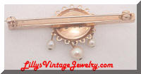 Click on pictures for larger views. Signed Vintage Brooch Pages 1 A-B, 2 C, 3 D-F, 4 G-J, 5 K-L, 6 M-P, 7 Q-S, 8 T-Z & #s Stunning Rose Sword Vintage Stick Pin Marked A beautiful stick pin of textured gold tone depicting a sword. At the handle of the sword is a beautiful black and white transfer of a rose and it is signed. There is a safety chain from the pin to the sheaf. I can't be sure but it is either NiaRea or Marea. This pin measures approx. 3-1/4" long. #7260847 Sale Pending Pair of Vintage MAMSELLE Mouse Lapel Pins A cute pair of scatter pins from Mamselle. They are small gold tone mice with white cabochon bodies. The pins themselves are not marked but are on the original sales card. These pins measure approx. 1-3/8" long. #616106 $25.00 Vintage MARINO Golden faux Pearls RS Bar Pin An Elegant gold tone bar pin marked Marino. This pin has 3 small dangling faux pearls, an 8 pointed star with a clear rhinestone center. This brooch measures approx. 2" wide. #1237023 $20.00 Vintage MIRIAM HASKELL Golden Photo Locket Brooch A gorgeous gilt gold tone metal bow and locket brooch marked Miriam Haskell on the back of the bow. The locket has 2 panels or doors that are spring loaded. The floral stamping and etching in the metal is fabulous. This brooch measures approx. 3" x 1-3/4". #4080912 $175.00 Vintage Miriam HASKELL Golden Faux Pearls Floral Brooch A signature gilt golden flowers brooch with Nikki faux pearls. This brooch is marked Miriam Haskell. The leaves and golden tulips are detailed. The pearls are wire attached. This brooch measures approx. 2-3/4" x 1-3/4". issues: coating wear to the large pearl from rubbing on the over tulip (not as noticeable as the magnified photo). #2061112 SOLDVintage Miriam HASKELL Pink Rhinestones Beads faux Pearls Floral Brooch A rare and gorgeous Miriam Haskell brooch. It's base is gilt gold tone leaves and flowers. It is adorned with faux pink pearls, beads and bright and pale pink round rhinestones. The rhinestones are prong set. The beads and pearls are wire attached. This brooch measures approx 2-1/2" x 1-1/2". #2061111 SOLD Vintage MONET Silver tone Maltese Cross Brooch A layered textured silver tone Maltese cross brooch marked Monet ©. This large brooch measures approx. 2-3/4" across. #4080910 $35.00 Vintage MONET Potted Flower Tree Pin Brooch A potted