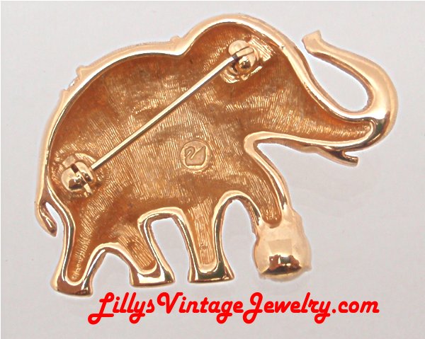 measures 2" x 1-7/8" $35.00 Vintage STERLING Silver Gold Washed Rhinestones Butterfly Brooch A gorgeous 1940's Butterfly brooch marked Sterling in 2 places. This beautiful butterfly has green, yellow, clear, orange, red and blue chaton cut rhinestones. All of the rhinestones are prong set. The wings are very domed. This brooch is either gold washed or vermeil. measures approx. 3" x 3" at the widest points. #6070811 $75.00 Vintage Stamped Silver tone Rose Brooch Marked A pretty classic antiqued silver tone thin stamped flower brooch. Looks like a cabbage rose. This pin is marked on the C clasp but I can not make it out, looks like ST????. It has a tube hinge. measures approx. 1-1/4" across. #10230734 $20.00 Cute SWAROVSKI Circus Elephant Brooch A very cute gold plated circus elephant pin marked with the Swarovski swan. He is decorated with clear rhinestones on the blanket and stepping on a red round rhinestone for the ball. This brooch measures approx. 1-1/4" x 1-1/2". #216112 $35.00 Vintage SWOBODA Nesting Bird Brooch A very collectible and sought after brooch marked Swoboda. This nesting bird brooch is gold plated, hand painted and has semi precious stones and pearls. The stones look to be peridot, turquoise, amethyst, and we're not sure that the pink and red ones would be. issues: a scuff on top of the birds head but no damage. #7121013 $75.00 ~ Go to Signed Vintage Brooch Page 8 ~ Signed Vintage Brooch Pages |